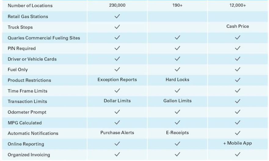Every fleet is unique. Whether you’re looking for convenient locations, universal acceptance or easy online account management—Quarles has you covered.